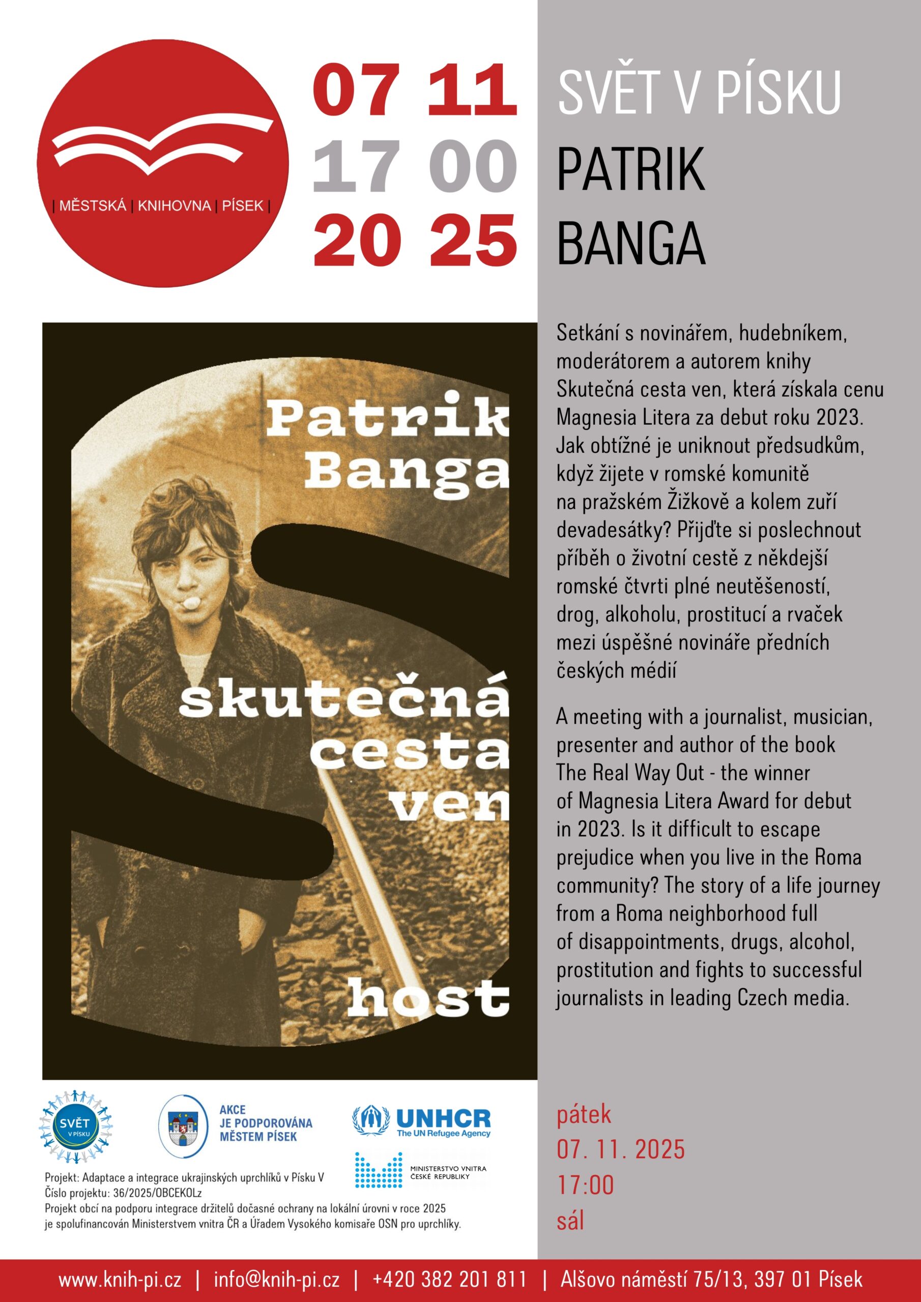 Setkání s novinářem, hudebníkem, moderátorem a autorem knihy Skutečná cesta ven, která získala cenu Magnesia Litera za debut roku 2023. Jak obtížné je uniknout předsudkům, když žijete v romské komunitě na pražském Žižkově a kolem zuří devadesátky? / sál