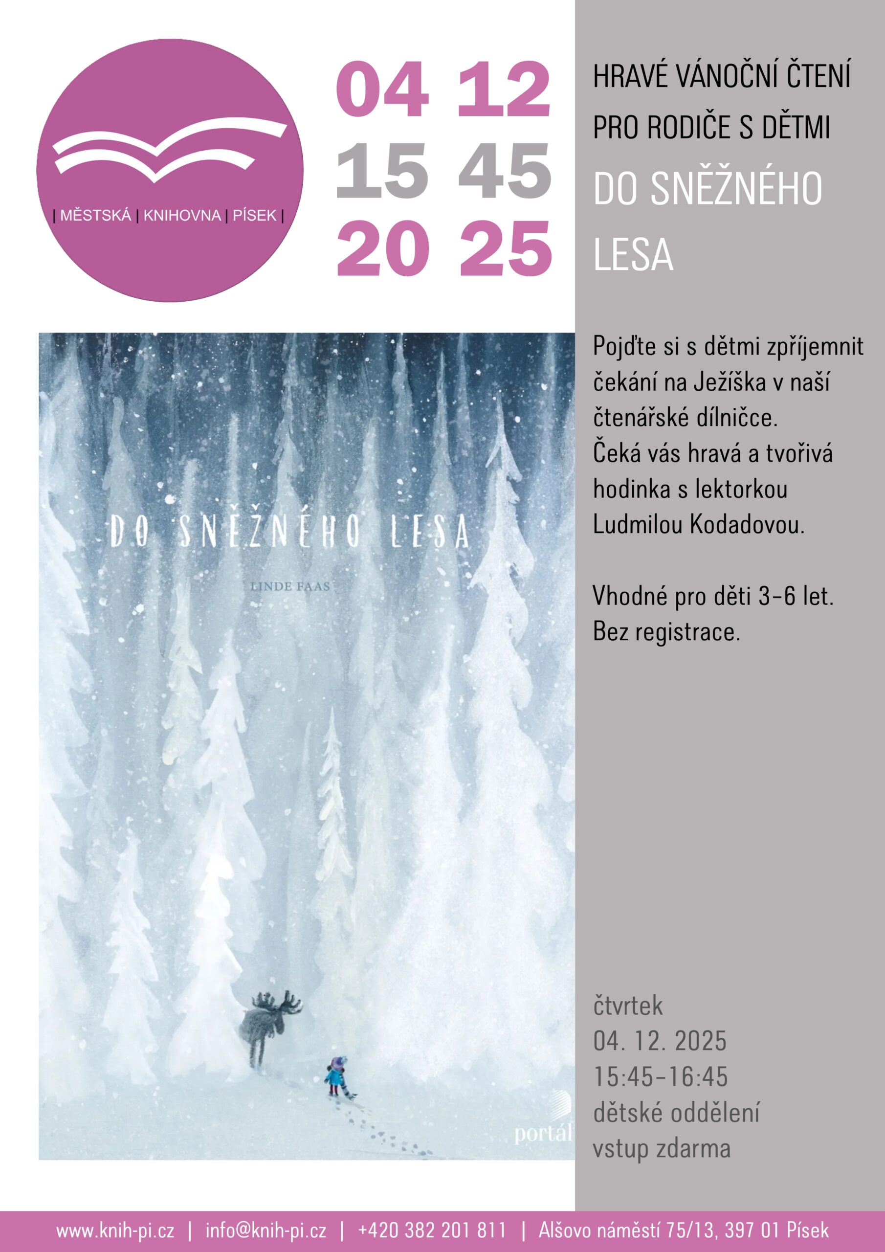 Pojďte si s dětmi zpříjemnit čekání na Ježíška v naší čtenářské dílničce. Čeká vás hravá a tvořivá hodinka s lektorkou Ludmilou Kodadovou. / dětské oddělení, bez registrace, vhodné pro děti 3–6 let