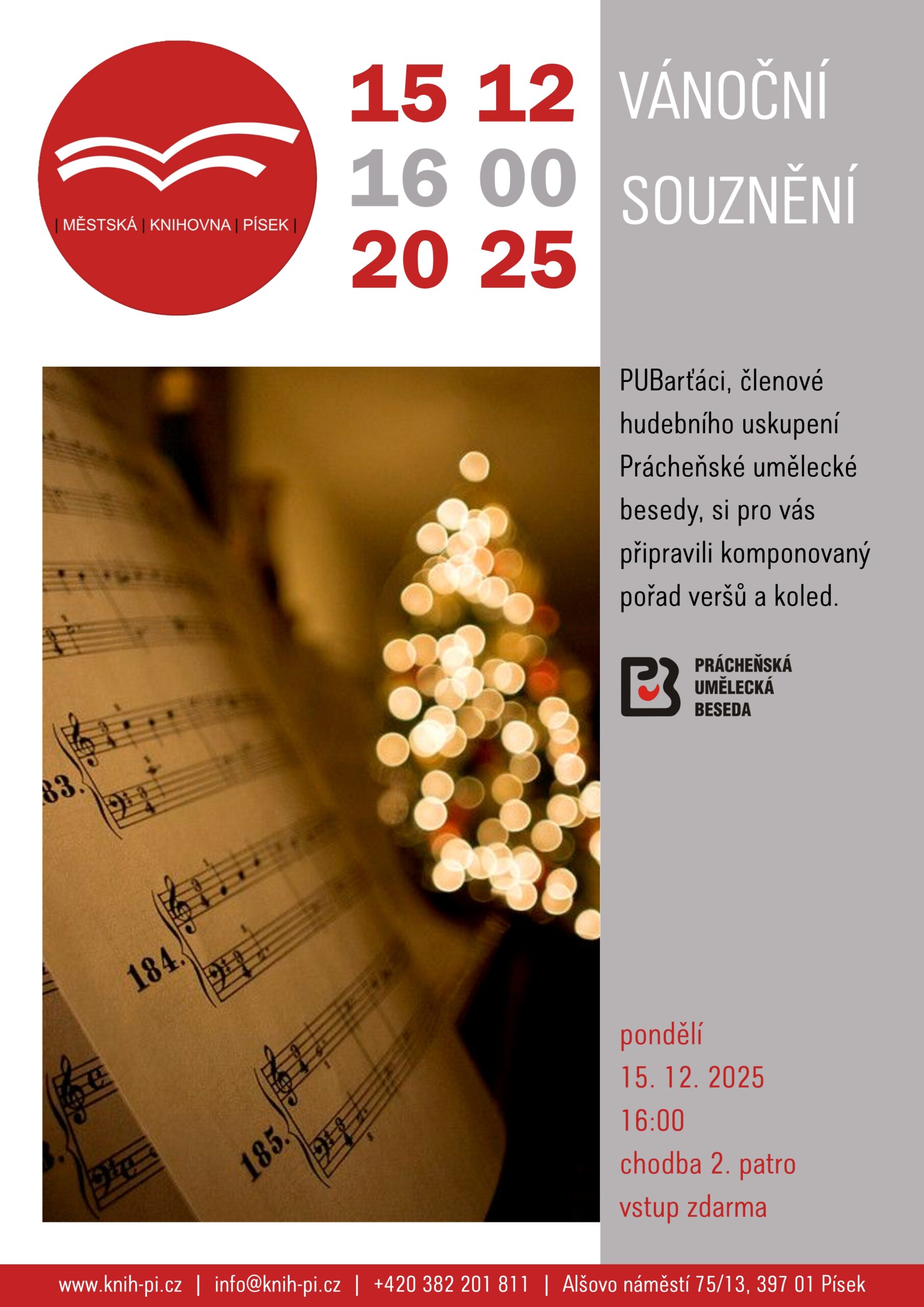 PUBarťáci, členové hudebního uskupení Prácheňské umělecké besedy, si pro vás připravili komponovaný pořad veršů a koled. / chodba 2. patro