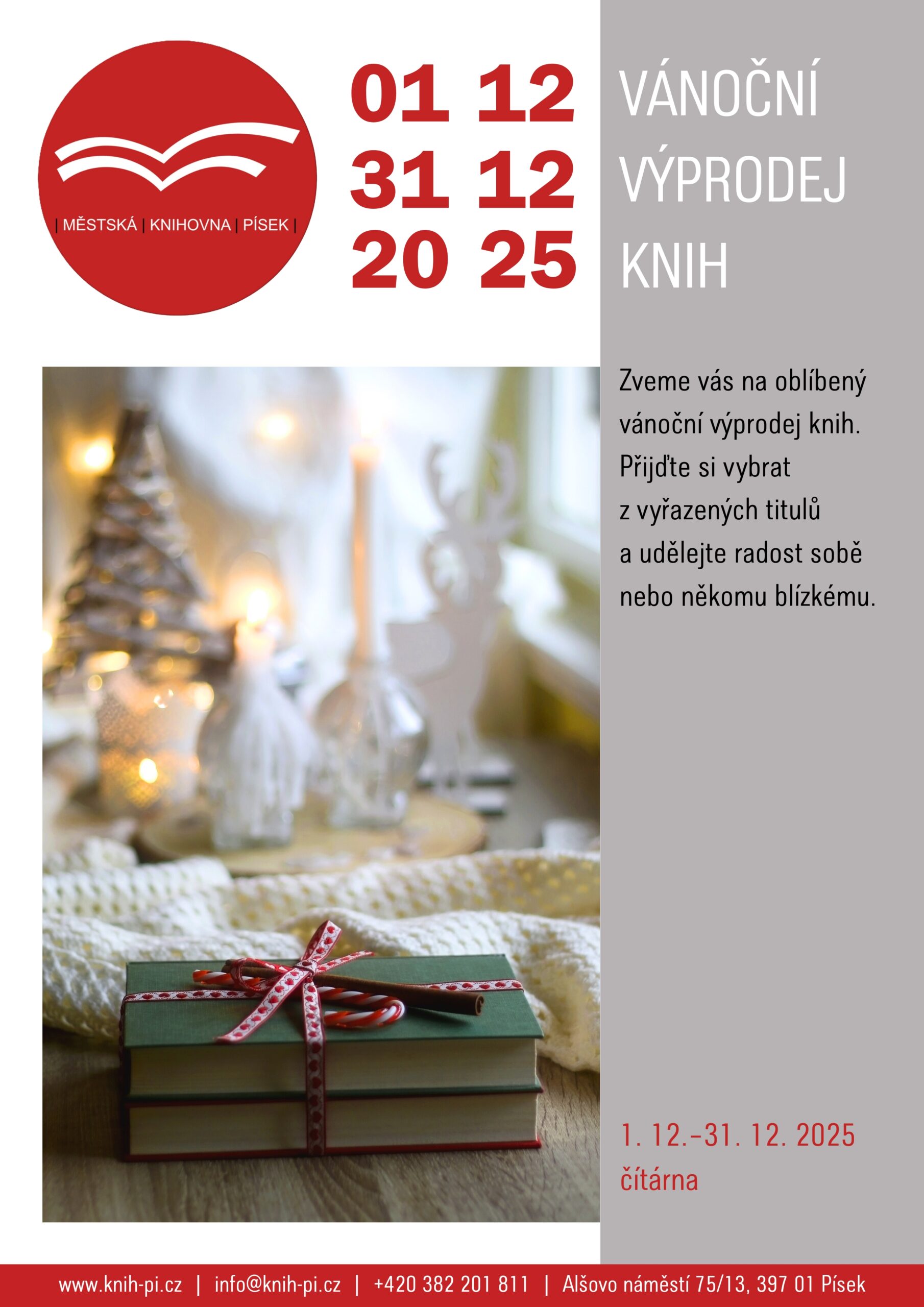 Zveme vás na oblíbený vánoční výprodej knih. Přijďte si vybrat z vyřazených titulů a udělejte radost sobě nebo někomu blízkému. / čítárna
