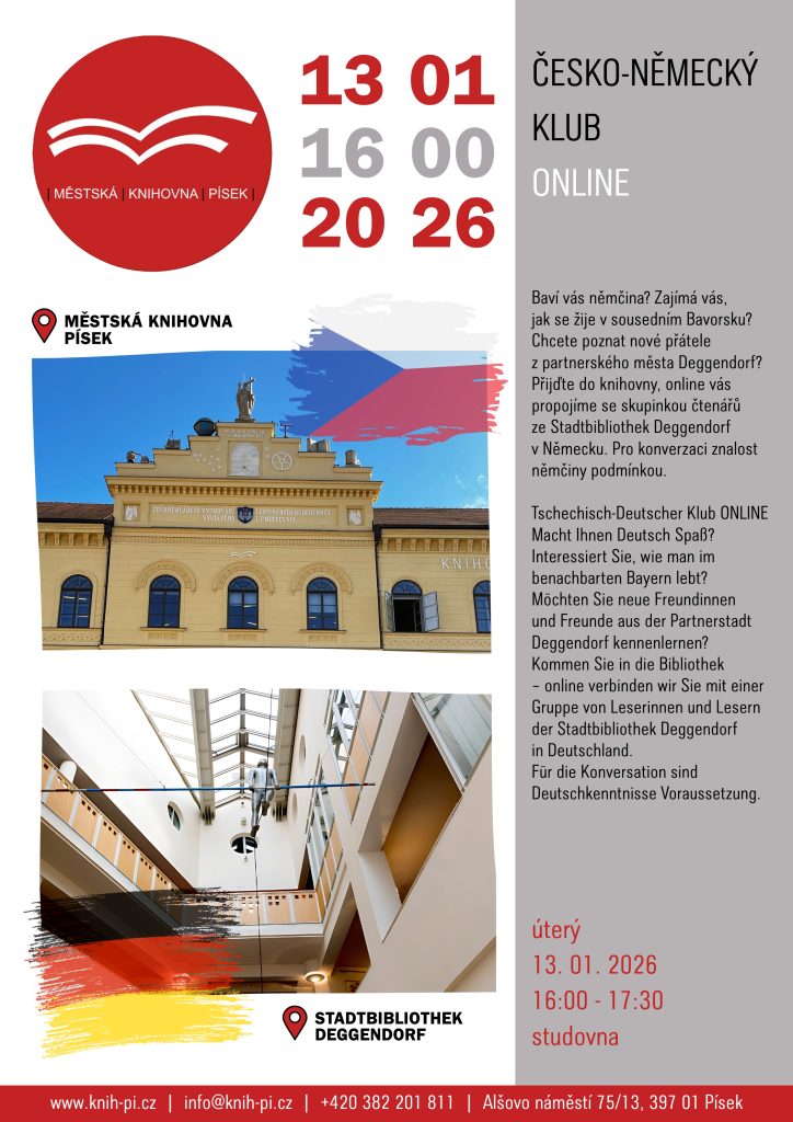 Baví vás němčina? Zajímá vás, jak se žije v sousedním Bavorsku? Přijďte do knihovny, online vás propojíme se skupinou čtenářů ze Stadtbibliothek Deggendorf v Německu. Pro konverzaci znalost němčiny podmínkou. / studovna