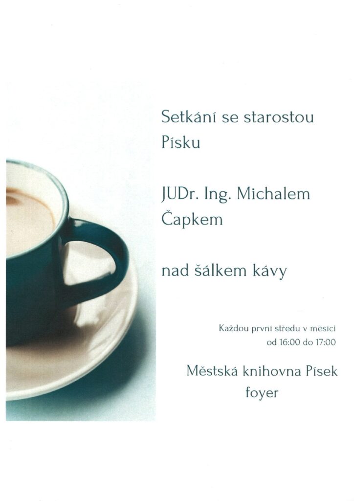 Pravidelné neformální setkání se starostou města Písku JUDr. Michalem Čapkem nad šálkem kávy. / foyer