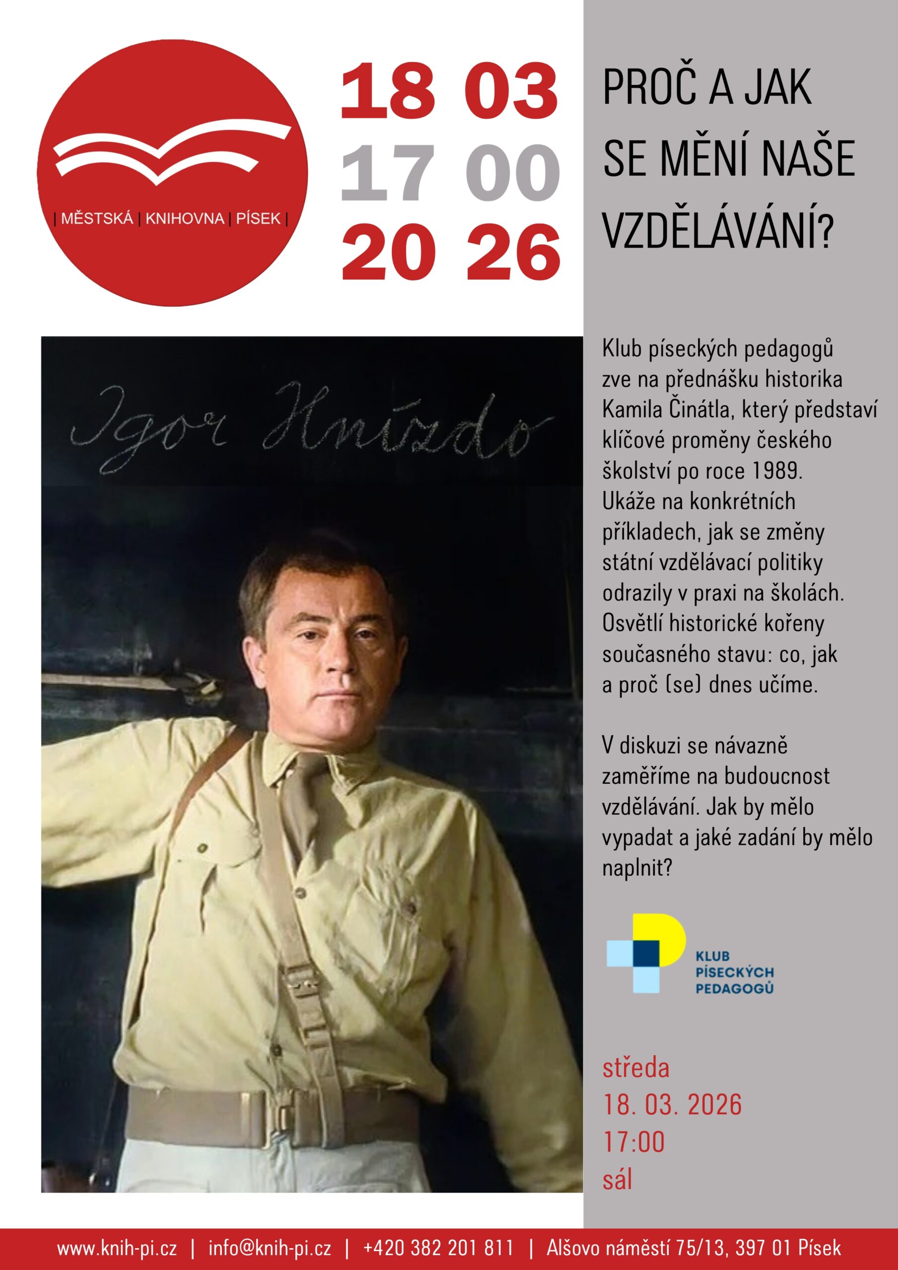 Klub píseckých pedagogů zve na přednášku historika Kamila Činátla, který představí klíčové proměny českého školství po roce 1989.